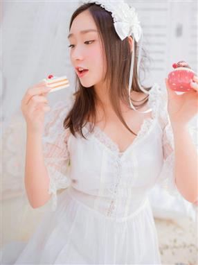 白蕾丝女仆装连衣裙清纯少女手捧花清新写真,内蒙古美女图片